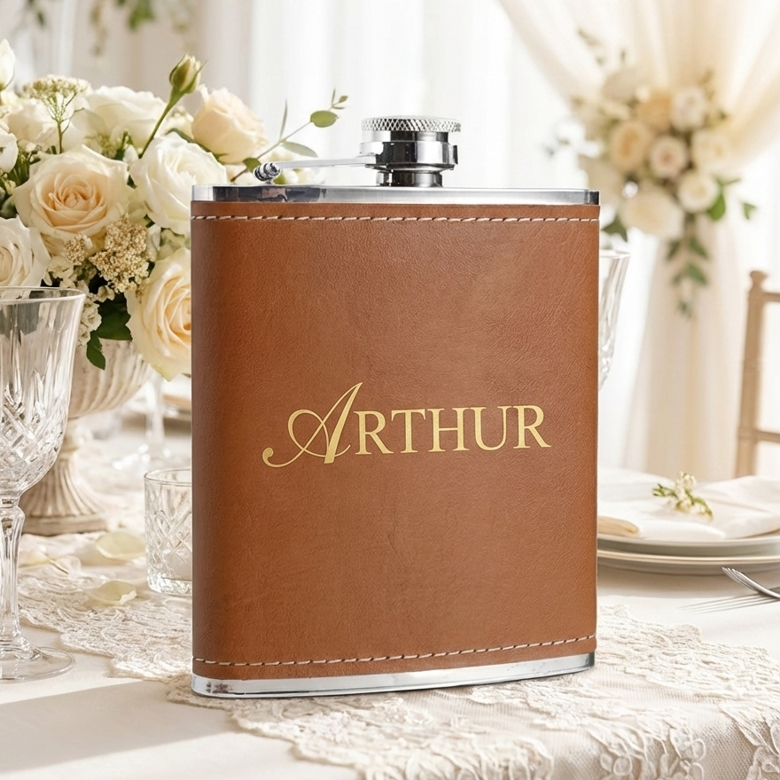 Cantil Inox 200ml com Couro Sintético